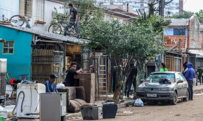 Este sábado (18) começou sem chuva e com sol em Porto Alegre. A água das ruas já baixou em boa parte da zona sul da cidade. Foi a senha para quem foi atingido começar a limpeza das casas. No bairro Menino Deus, as calçadas ficaram cheias de móveis, colchões, eletrodomésticos, livros e todo o tipo de objeto que algum dia já teve valor, mas que agora vai para o lixo.