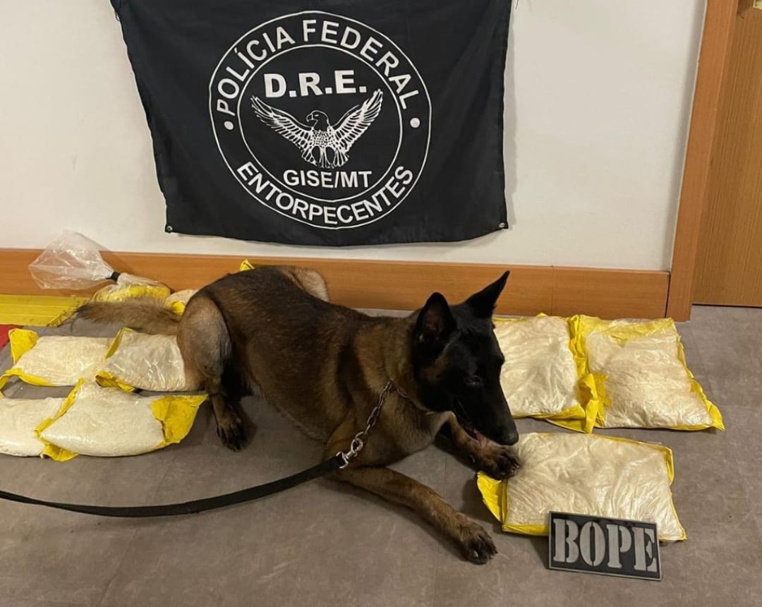 Policiais militares do Batalhão de Operações Policiais Especiais (Bope), com apoio da Polícia Federal, apreenderam mais de 10,5 quilos de pasta base de cocaína no Aeroporto Marechal Rondon, em Várzea Grande, nesta quinta-feira (20.07). Na ação, um homem e uma mulher foram presos por tráfico ilícito de drogas.