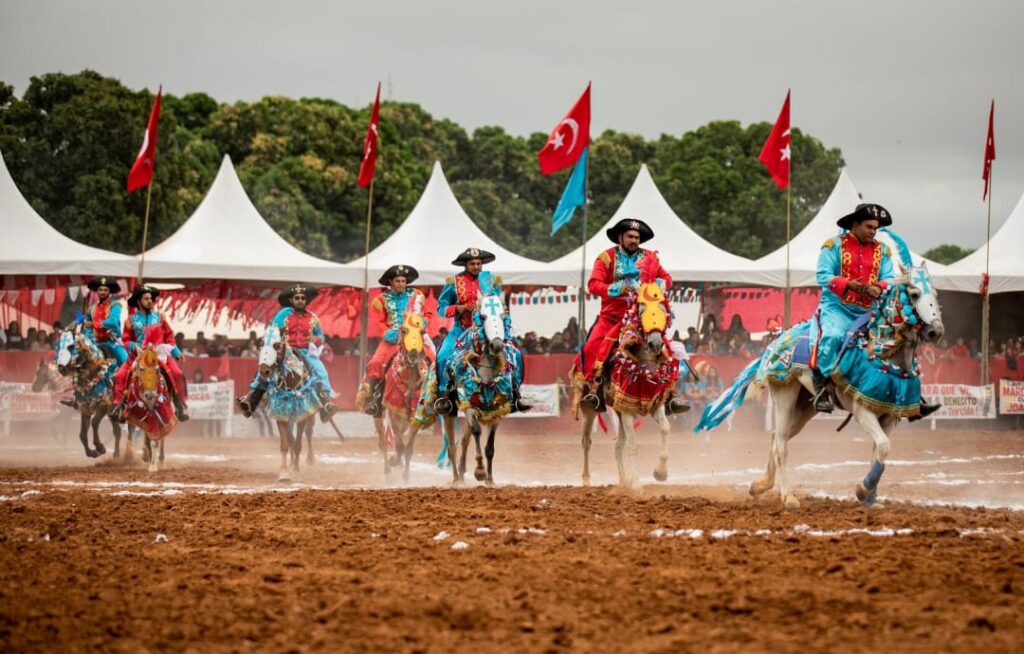 Além de mergulhar na história, o público acompanha um espetáculo de cultura e beleza. A encenação composta por dois grupos participantes, 12 Mouros e 12 Cristãos, traz cavaleiros e pajens com ricas vestimentas e adereços, e cavalos enfeitados com adornos singulares em lutas sucessivas ao som percussionista do repique na arena.