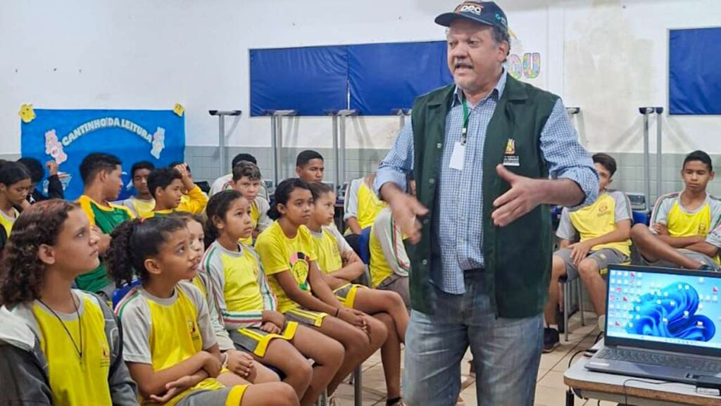 Filhos de famílias da agricultura familiar receberam nesta quinta-feira (02), na Escola Municipal de Educação Básica (EMEB) ‘Bianka Lorena Rocha Capilé’, no Assentamento Rural Sadia 3, uma importante formação em agroecologia. O objetivo foi sensibilizar os alunos sobre práticas mais sustentáveis na produção agrícola e noções de educação ambiental, preparando-os para contribuir com o futuro das propriedades de suas famílias.
