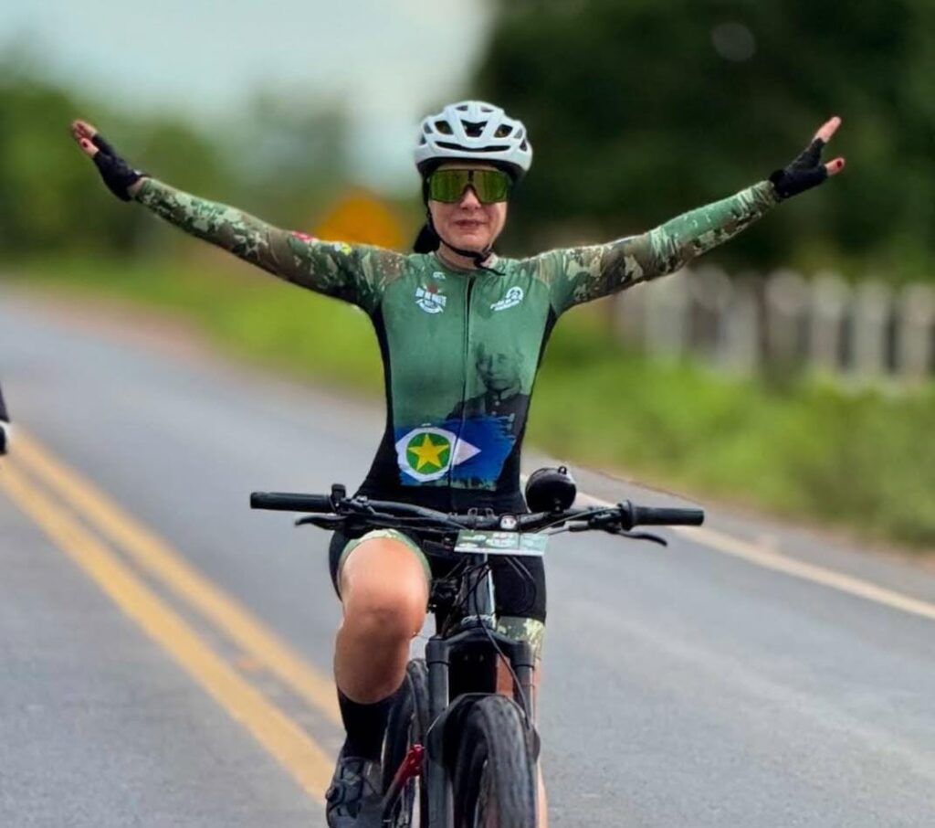 Flávia, vestindo um macaquinho de ciclismo verde com camuflagem militar nos braços e estampas do Marechal Rondon ao lado da bandeira de Mato Grosso, sentiu o vento no rosto e o sol aquecendo sua alma. Ela reflete que o esporte vai além do físico; é uma verdadeira oportunidade de liberdade, inspiração e transformação para o corpo e a mente. “Um obrigada ao meu amigo @pedaldocachorrao pelo trabalho exemplar de sempre!” disse Flávia, reconhecendo a contribuição do colega para essa jornada.