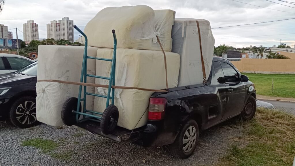 A equipe estava em diligências na região, quando avistou a picape Montana com a mercadoria e ao solicitar a nota fiscal, o motorista do veículo e a mulher que estava com ele ficaram nervosos. Em contato com o proprietário da loja, localizada em um shopping da Capital, este informou que não havia nenhuma venda e entrega de estofado.