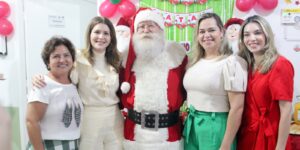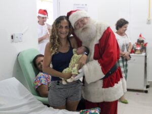 A atmosfera festiva foi ainda mais enriquecida pela presença do Papai Noel e dos músicos que, com violões e flautas doces, proporcionaram um ambiente de celebração e esperança. As mães, em diferentes estágios da jornada da maternidade, foram unidas pela emoção e pela gratidão.
