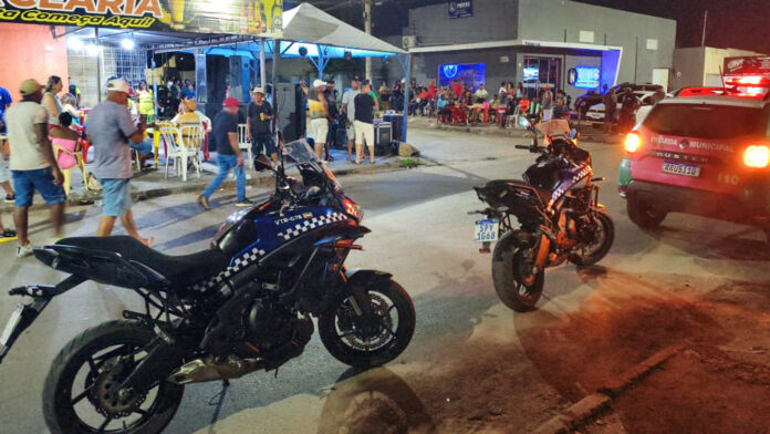Ao chegarem no local, os GM’s constataram som em volume elevado, instalação de tendas ocupando parte da via pública e obstruindo o trânsito de veículos, além da ausência de alvará de funcionamento do estabelecimento.