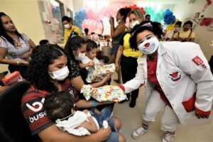 Para celebrar o Dia das Crianças, comemorado em 12 de outubro, o Hospital Municipal de Cuiabá e Pronto Socorro Dr. Leony Palma de Carvalho” ( HMC), preparou uma semana especial. A programação levou brincadeiras, gostosuras, recreação, atividades lúdicas, atrações, brinquedos e muita palhaçada para os pacientes infantis. Cerca de 50 crianças hospitalizadas participaram das comemorações.