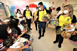 O ponto alto da ação foi à entrega de brinquedos para as crianças hospitalizadas, doados pelo Sindicato dos Agentes de Trânsito e Transporte de Cuiabá. “Desde quando a primeira-dama Márcia Pinheiro iniciou os trabalhos em prol das pessoas em situação de vulnerabilidade econômica e social, estamos fazendo ações em conjunto, em favor da sociedade. Sempre buscamos essa parceria social, e nos colocamos à disposição sempre”, ressaltou o presidente do sindicato Ademir de Arruda, que representa 176 agentes sindicalizados.