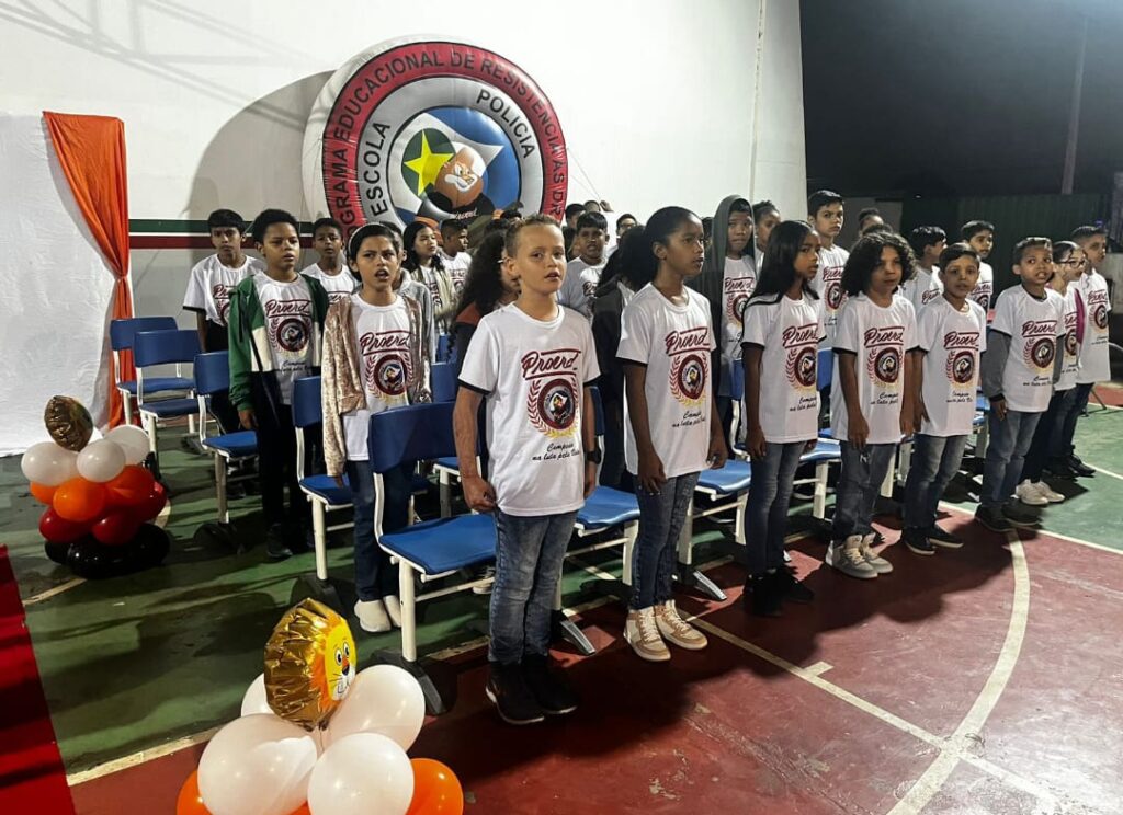 Alunos da rede municipal de ensino de Várzea Grande iniciaram nesta semana as formaturas do primeiro semestre do Programa Educacional de Resistência às Drogas e à Violência (Proerd). A cerimônia, além de marcar o encerramento das aulas, serve como incentivo e reforço das lições transmitidas durante o projeto, cujo objetivo é realizar a prevenção contra drogas nas escolas.