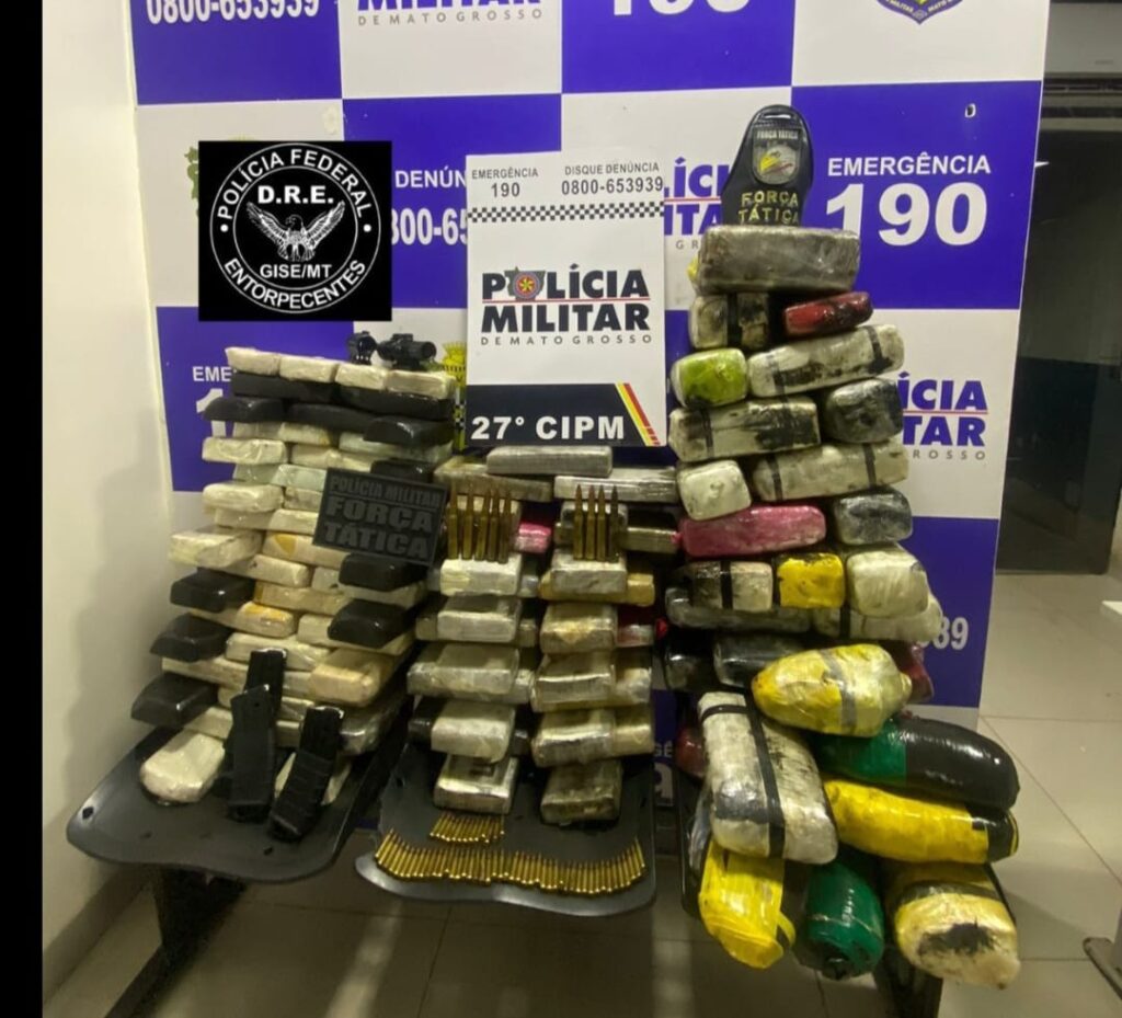 Um homem de 44 anos foi preso neste sábado (02.12) por policiais militares da 27ª Companhia Independente, com 106 tabletes de maconha e pasta base de cocaína e 69 munições de diversos calibres, no município de Confresa.