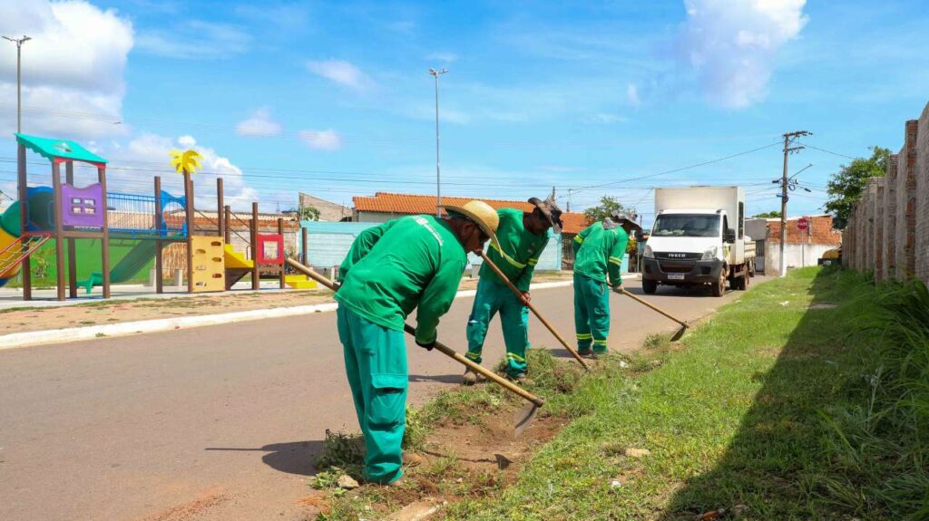 Os mutirões incluem limpeza, capinação, roçagem, retirada de resíduos, poda de árvores, revitalização de praças, pintura de meio-fio, manutenção e instalação de sinalização viária, implantação de quebra-molas, além da substituição de lâmpadas e instalação de novos braços de iluminação pública.