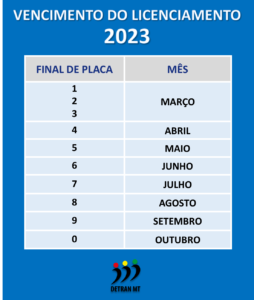 Já em relação ao licenciamento, os veículos com final das placas 1, 2 e 3 devem fazer a quitação até 31 de março. Para veículos com placa final 4, o pagamento será em abril; final 5 em maio; final 6 em junho; final 7 em julho; final 8 em agosto; final 9 em setembro; e final 0 em outubro.