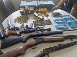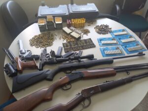 Durante as buscas foram apreendidas cinco armas de fogo (uma pistola, uma carabina, duas espingardas e um revólver) e aproximadamente 1.000 munições sendo 556 calibre 22, 108 calibre 20, 111 calibre 38, 34 calibre 38 deflagradas, 94 munições 9 mm, quatro munições de festim, além de outros apetrechos como case para pistola e para revólver, sacola para munições, protetor de espingarda, luneta de mira laser, e carregadores de espingarda cinco armas de fogo.