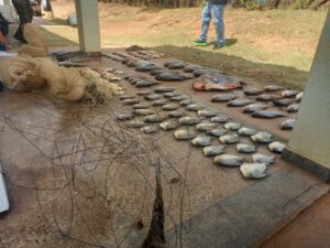 A operação, que ocorreu de forma terrestre e fluvial em um pesqueiro da região, resultou na apreensão de mais de 74 quilos de pescado irregular, cinco armas de fogo, aproximadamente 1.000 munições, além de outros apetrechos. Dois homens foram presos em flagrante por crime ambiental de pesca predatória e posse ilegal de arma de fogo.
