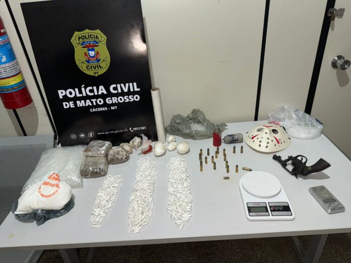 Com base no flagrante, os cinco homens e a adolescentes foram encaminhados com todo material apreendido para 1ª Delegacia de Polícia de Cáceres.
