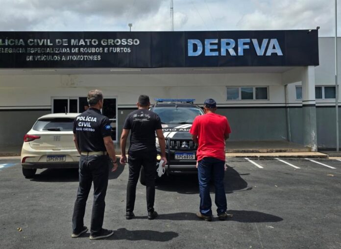 A Polícia Civil prendeu, nesta quinta-feira (17.4), duas pessoas, sendo um advogado e um suposto cliente, que tentavam retirar um carro apreendido na Delegacia Especializada de Roubos e Furtos de Veículos (DERFVA), em Cuiabá, com uso de documentos falsos. A fraude foi identificada na própria unidade policial.