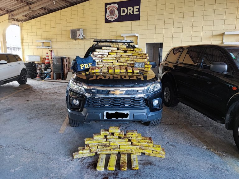 Polícia Federal e PRF apreendem mais de 65 kg de cocaína.
